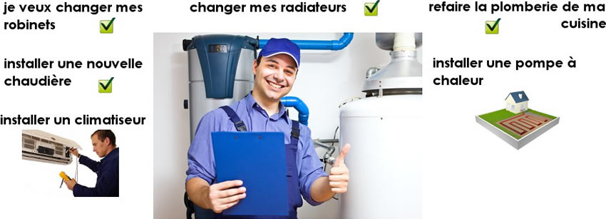 je veux changer mes robinets changer mes radiateurs installer une nouvelle chaudière refaire la plomberie de ma cuisine installer un climatiseur installer une pompe à chaleur